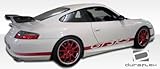Duraflex FRP Porsche 996 C2 C4 GT-3 RS Look Side Skirts 2pc > 1999-2004. Extreme Dimensions has revolutionized fiberglass marketing with their premium Duraflex aerodynamics. Duraflex is not flexible like urethane or plastic bumpers. Duraflex fiberglass combines fiberglass, plastic, and flex resins to obtain its unique features. Because of these features, Duraflex technology obtains a durability rate than the average fiberglass product, resulting in reduced shipping damages. Duraflex products come complete with a black primer finish, high quality mesh grille if applicable, generic hardware kit, and a basic guide to help you install the product. This revolutionary product allows the consumer to receive a premium fiberglass product at an affordable price. All fiberglass parts require modification, shaving, sanding, drilling, filling in order to ensure proper fitment.FeaturesHigh quality 6 oz. fiberglassProfessional prep work requiredCutting, Shaving, Filling required on FRP partsBlack primer finishHigh quality mesh grilleInstallation GuideGeneric Hardware Kit (most parts)Reduced damage rate up to 75%DISCLAIMER: Due to differences in products and design, durability test results may vary.